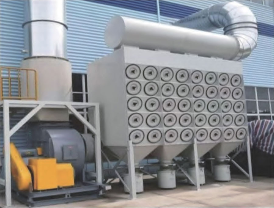滤筒除尘器以滤筒作为过滤元件所组成或采用脉冲喷吹的除尘器。滤筒除尘器过滤室的上面部分装有电磁阀和气包组成的脉冲室,除尘器的入口处装有气流分布板可使含尘气流均匀进入到过滤室,阻力随着滤筒表面粉尘层厚度的增加而增加,当阻力达到一定值时,出于净化效果考虑需进行清灰处理。
