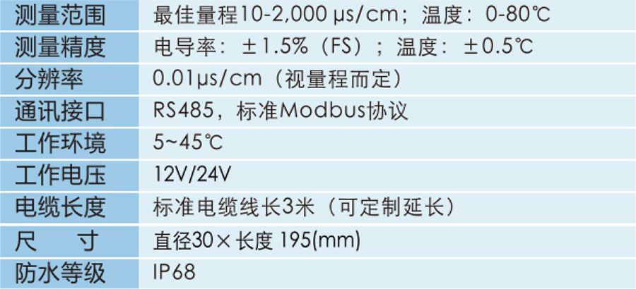 • 耐腐蚀外壳,防水等级IP68 , 可长期水下工作