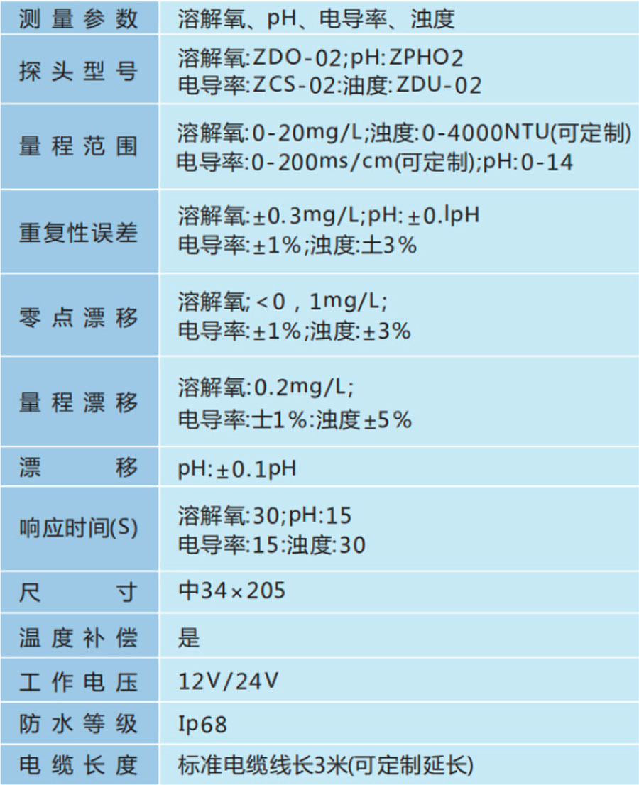 溶解 氧、电导率、油度、ORP、叶绿素、?绿藻、余氯、流量等参数的监测、数据读取和数据保存,并可按照定制的协议将数据上传到系统平台。