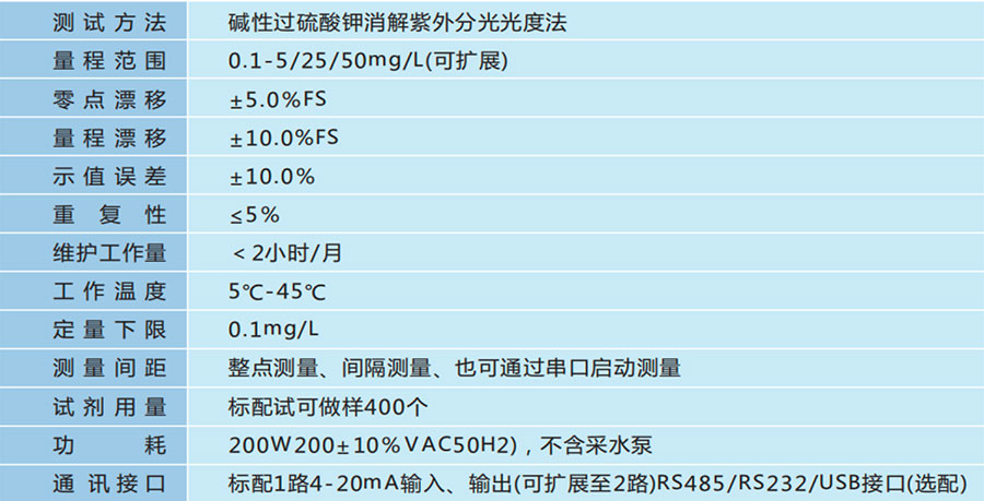 • 检测精度高、定量下限低(0.1mg/L), 仪表长期漂移量小。可靠性高,抗干扰能力强