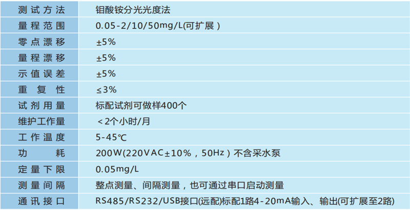 • 检测精度高、定量下限低(0.05mg/L),仪表长期漂移量小